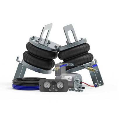AS-Air suspension for Ford Transit, from 2001 on, FWD, single rear wheel. Set contains 2 air bellows, metal brackets, air pipes, compressor and control panel.