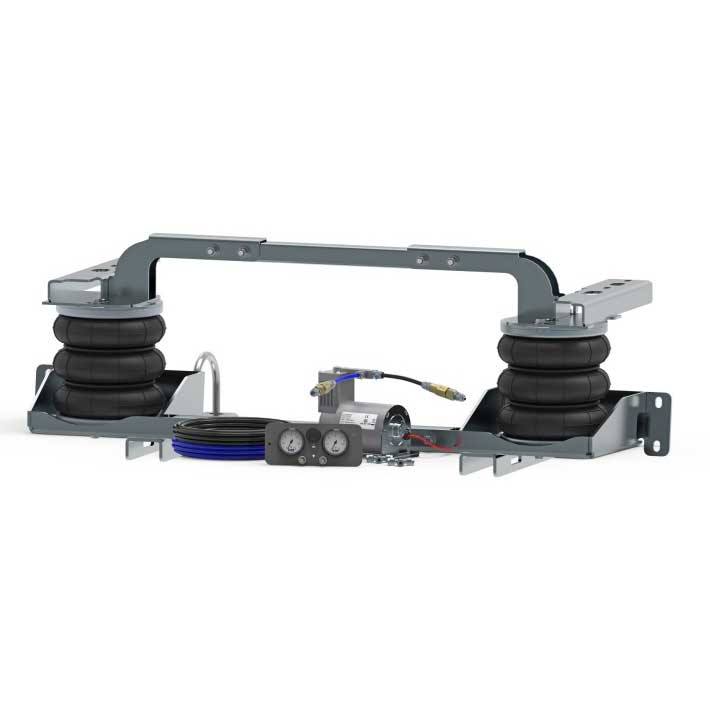 Set contains 2 air bellows, metal brackets, air pipes, compressor and control panel.