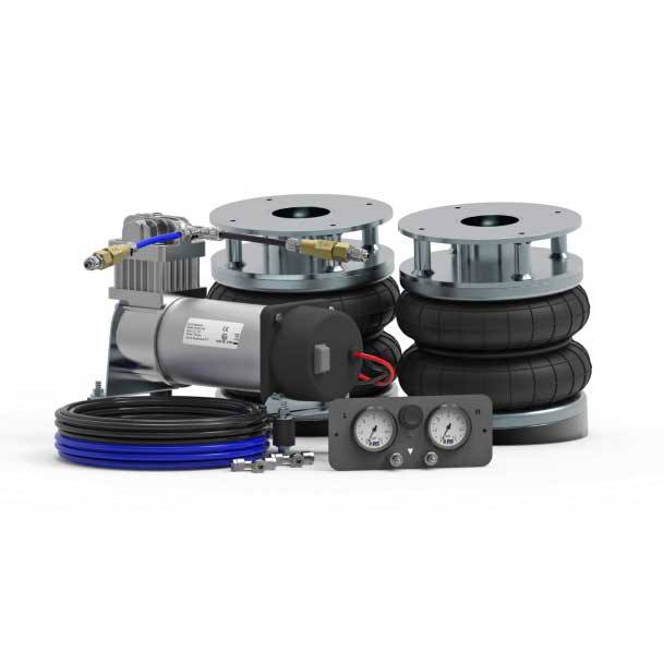 AS-Air Suspension for Volkswagen T5 and T6, from 2002 on. Fully air suspension on rear axle.Set contains 2 air bellows, metal brackets, air pipes, compressor and control panel.
