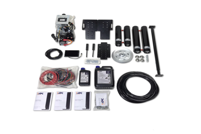 Set sestavljajo: 4 hidravlične teleskopske nogice, hidravlična črpalka, hidravlično olje, cev, priključki, ventili, upravljalna enota z zaslonom na dotik. Možnost povezave z aplikacijo na mobilnem telefonu.
